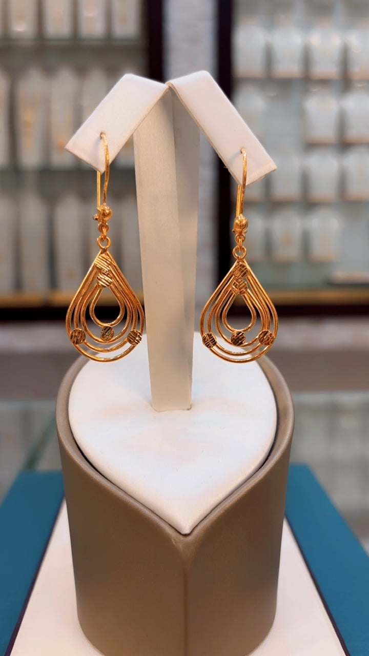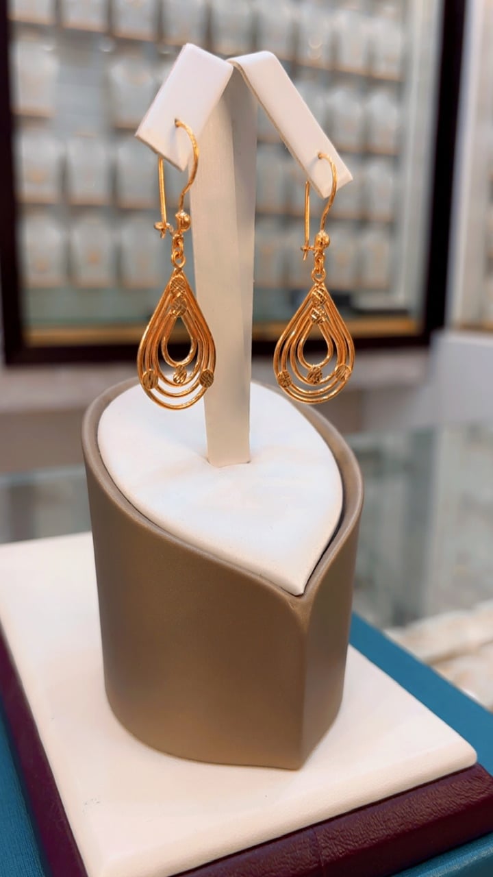 حلق شكل الدمعة تصميم جميل وراقي ذهب صافي عيار 21