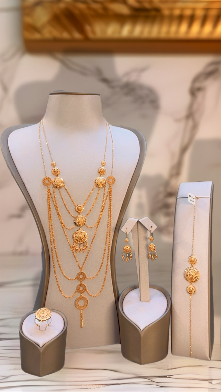 طقم جميل طقم كرسي جابر مع عقد سبحة الدونات تصميم جميل وراقي وانيق ذهب صافي عيار 21