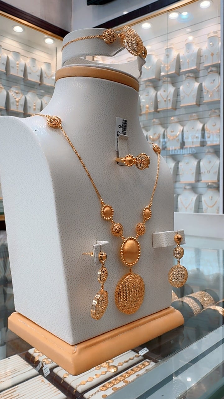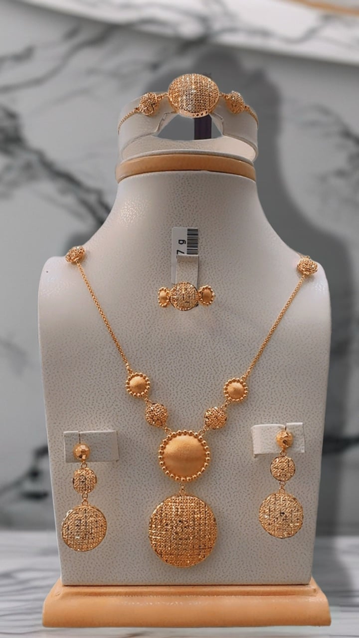 طقم جميل وراقي وانيق تصميم البصمة فاخر جدا الاكثر مبيعا ذهب صافي عيار 21
